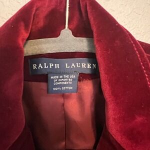 Keywords: Ralph Lauren, velvet blazer, red blazer, party blazer, formal blazer, evening blazer, fashion blazer, designer blazer, preppy out LCD dark academia