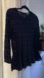 Material: 46% Polyester, 41% Nylon, 13% Elastane Details: Navy blue peplum style top with rounded neckline and 3/4 sleeves. Beautiful subtle pattern in a slightly raised faux velvet texture. Keyhole with a button-and-loop closure at the center back of the neck.