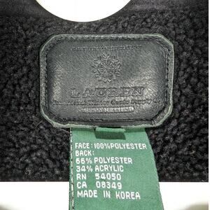 Ralph Lauren Vest Womens PP Petite Black Sherpa Soft Zip up Faux Suede Preppy