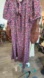 Elegant dress with vibrant floral pattern. Features rich pink and purple tones.