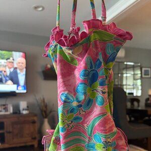 Ralph Lauren Vibrant Pink & Blue Floral Ruffled One-Piece Swim☀️ 24M