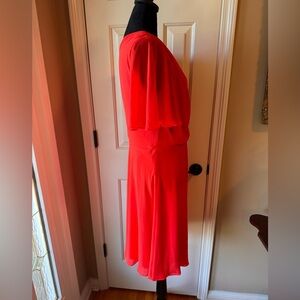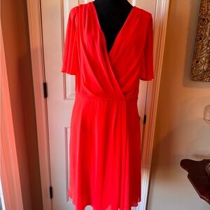 Chic and stylish midi dress. Features a flattering wrap design. Perfect for any occasion.