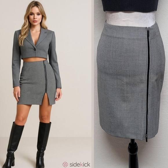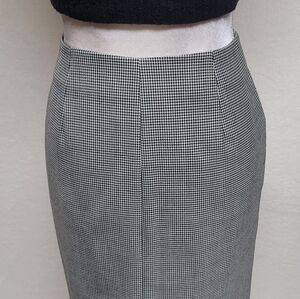 Show off an adorable preppy style that's super trendy this season with this vintage 1990s houndstooth mini skirt. It features a high-rise waist, a chic double ended zipper, and sexy, curve-hugging silhouette. Pair this skirt with a basic bodysuit and a cropped jacket.