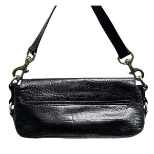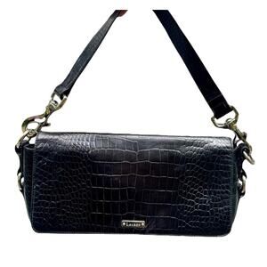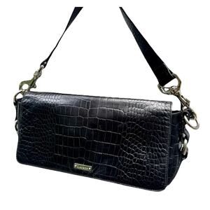 Ralph Lauren alligator leather bag, vintage croc purse, Y2K shoulder bag black, 2000s quiet luxury, RL fall handbag, detachable strap bag, croc embossed leather purse, minimal RL bag, Carolyn Bessette style, vintage Ralph Lauren classic purse, Max Mara style, equestrian minimalist bag