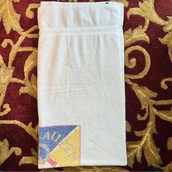Ralph Lauren Vintage Anchor Flags Chain Yacht Grayish-White 1980s Beach Towel in Good vintage condition. Some pulls and fringe-pls see photos-priced accordingly. Make an offer!!! ***As with all vintage items, signs of wear are to be expected***Pls see all photos as they are part of my description****