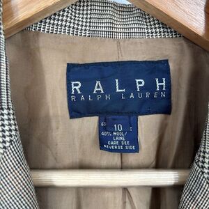 Ralph Lauren Vintage Check Wool Tweed Herringbone Blazer Brown 10 Double Breaste