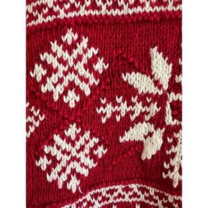 Ralph Lauren Vintage Hand Knit Red & Ivory Snowflake Mock Neck Ski Sweater Small