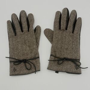 Ralph Lauren Vintage Herringbone Lamb’s Wool Lining Leather Bow Driving Gloves -