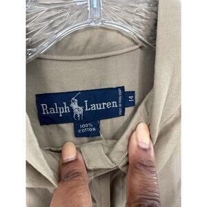 Ralph Lauren Vintage Khaki Chino Casual Long Sleeve Button Up Maxi Dress Size 14