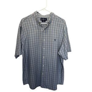Ralph Lauren | Vintage Light Pink & Blue Monroe Button Up Shirt 2XL Short Sleeve