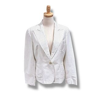 Ralph Lauren Vintage Linen White Black Pinstriped Women’s Blazer Size 12