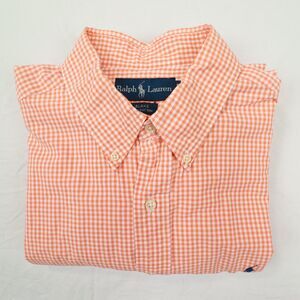 Ralph Lauren Vintage Men's Orange White Gingham Check Blake Button Up size XL