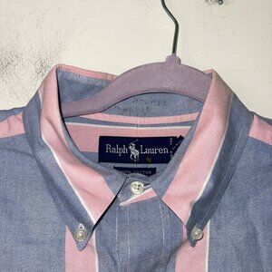 Ralph Lauren Vintage Mens Shirt Size 34 Blue Striped Button Down Pure Cotton