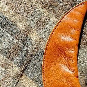 USA made, camp beacon blanket-inspired wool nylon blend fabric.