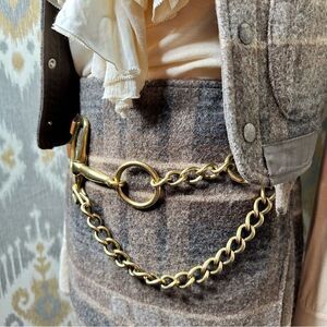 Collectible 1990s pony label set, wool with leather trim, vest and skirt.