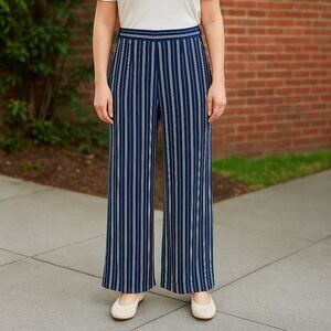 Ralph Lauren Vintage 100% Silk Striped Wide-Leg Pants Women’s Size 6 – Navy & Cream