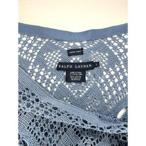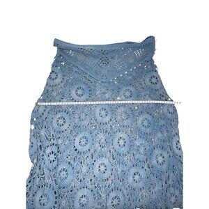 Ralph Lauren Vintage Size L Blue crochet Lace Bohemian Skirt Hand Knit Cotton
