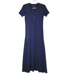 Ralph Lauren Waffle Knit-Henley Midi Dress in a Classic Navy Blue Color. Size S