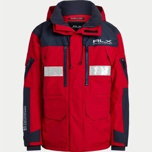 * Long sleeves. Adjustable hook-and-loop tabs at the cuffs. Interior storm cuffs. "03 Unit PSRL/Technical Outerwear" at the right sleeve. Zip pocket at each sleeve. "RLX" tabs at the pocket flaps.