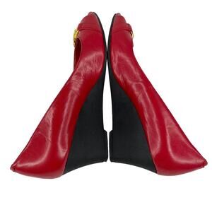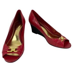 Ralph Lauren Wedges Paula Cherry Red 7.5B Leather Open Toe