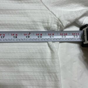 This Ralph Lauren top offers a relaxed fit with its ribbed texture and 3/4 sleeves, perfect for a casual yet stylish look. The solid white color adds a touch of elegance, making it a versatile addition to any wardrobe.