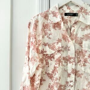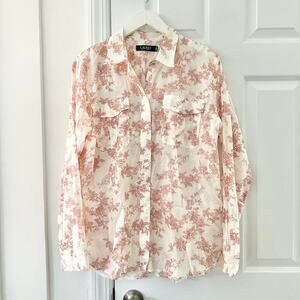 Ralph Lauren White Cotton Red Floral Toile Patch Pocket Buttondown Shirt Lrg NWT
