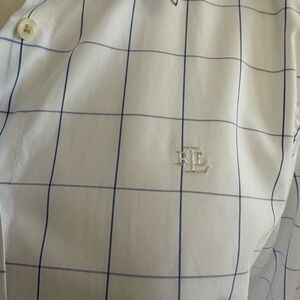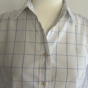 Ralph Lauren White and Blue Checkered Button Down Shirt