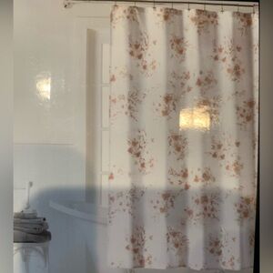 Ralph Lauren White and Red Floral 100% Cotton Fabric Shower Curtain 70"x72"