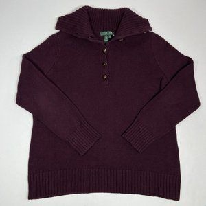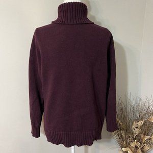 Ralph Lauren Woman’s Turtleneck Cotton Burgundy Sweater, Leather Buttons Sz 1X