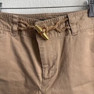 Ralph Lauren Women Beige Khaki Shorts Rope Tie Mid Rise Chino
