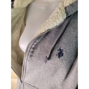 Ralph Lauren Women Grey Fleece Lined Zip up Jacket Hood Sz M