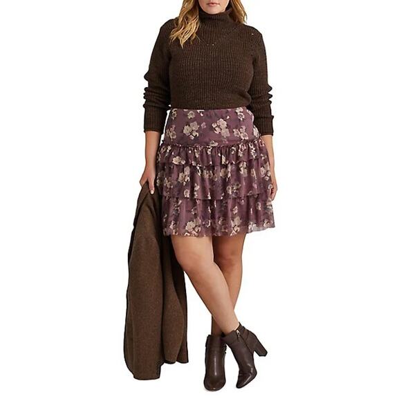 Ralph Lauren Women Purple Georgette Boho Ruffle Tiered A-line Skirt Plus Size 18