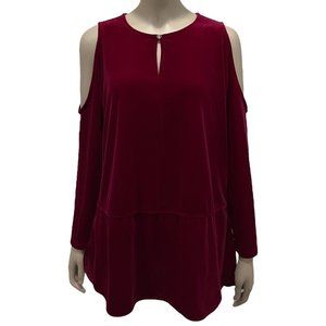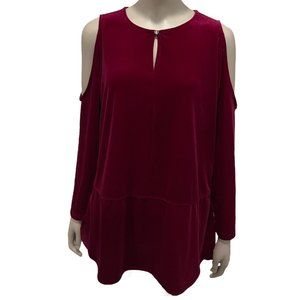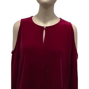 Ralph Lauren Women Velvet Cold Shoulder Top Blouse Keyhole Front Magenta Size XL