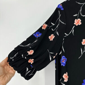 Lauren Ralph Lauren Puff Short Sleeve A-Line Black Floral Knit Dress Size 12