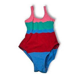 Ralph Lauren Womens 1980s Color Block One Piece Swimsuit Size 10 Multicolor
