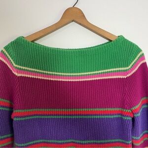 [Ralph Lauren] Women's 90s Y2K Multi Colored Striped Knit Boatneck Sweater