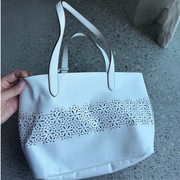 Ralph Lauren White Laser Cut Tote Bag Faux Leather With Pouch