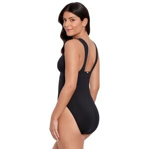 Enhance your vacation style with the modern and elegant Ralph Lauren Women's Beach Club Solids Modern V-Neck One Piece Swimsuit.