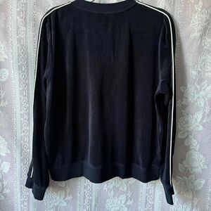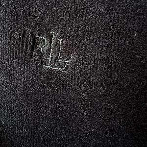 Cozy Lauren Ralph Lauren black velour zip-up jacket with white piping. Excellent condition.