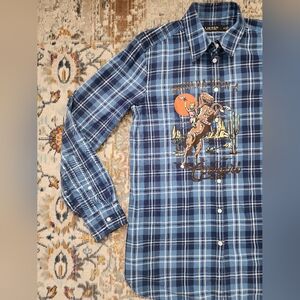Ralph Lauren, Women's Blue Long Sleeve Button Front Shirt Upcycle Rodea, sz SM