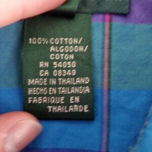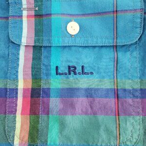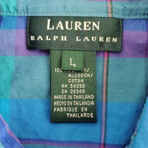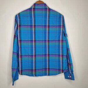 Ralph Lauren Womens Bright Plaid Button Front Blouse Size L Long Roll Tab Sleeve