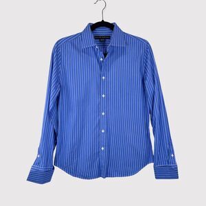 Ralph Lauren Black Label Womens Button Up Shirt Blue Pinstriped Slim Fit Long Sleeve Small