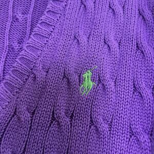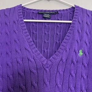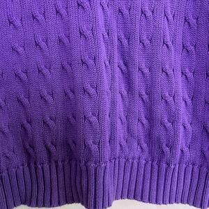 Ralph Lauren Women's Cable Knit Sweater Fisherman Sz XL Purple V Neck Cotton