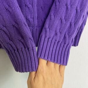 Ralph Lauren Women's Cable Knit Sweater Fisherman Sz XL Purple V Neck Cotton Closet stable Fisherman Essential Timeless Capsule wardrobe