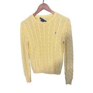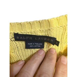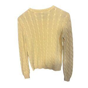 Ralph Lauren Womens Cable Knit Sweater S Yellow 100% Cotton Crewneck Made In Tha