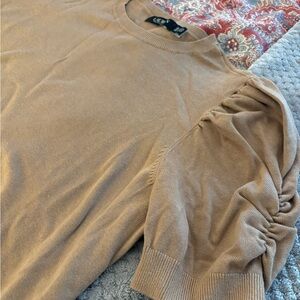 Elegant camel hue. Classic crewneck design. Puff detailing on short sleeve. Brand new w/o tags-never worn!