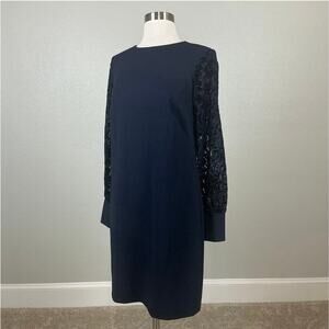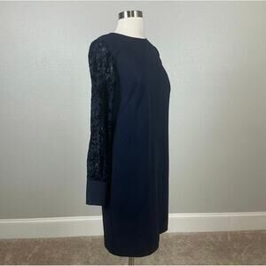 Ralph Lauren Women's Cocktail Dress Size 8 Blue Crepe and Lace Long Sleeve Shift