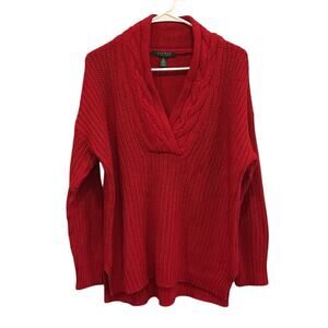 Ralph Lauren Womens Cowl Neck Sweater Size PL Large Red Cotton Classic Preppy