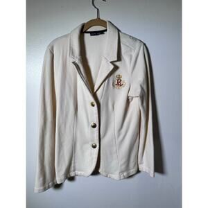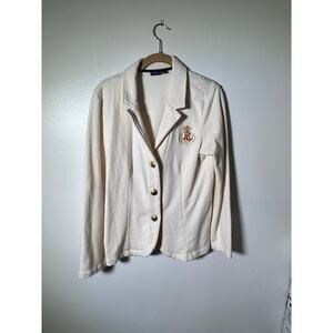 Ralph Lauren Women's Cream Gold Buttons cotton Embroidered Blazer Jacket Size