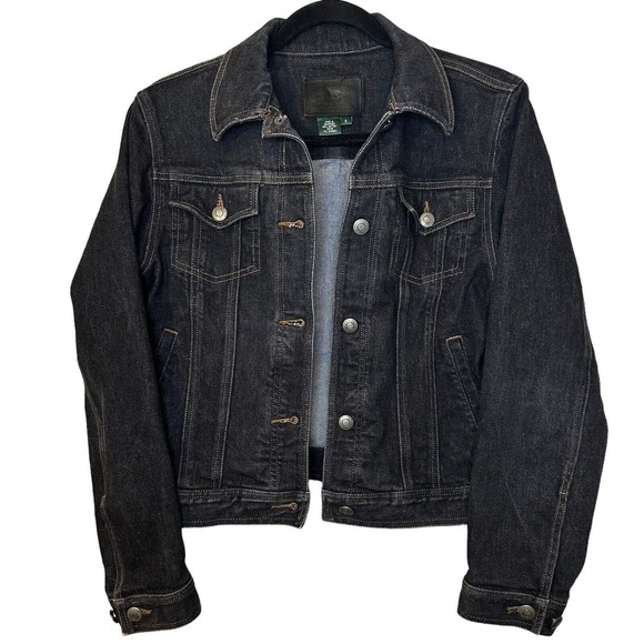 Ralph Lauren Womens Dark Denim Jean Jacket S Black Full Button Up
